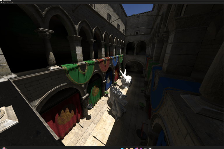 My dissertation investigates the effectiveness of Dynamic Diffuse Global Illumination (DDGI) and explores how it can be enhanced for real-time applications. This research is implemented directly within Spark, utilizing my custom Vulkan architecture as a technical foundation. A primary focus of this investigation is the integration of DDGI directly into ReSTIR DI to analyze potential improvements in sampling efficiency and lighting stability.